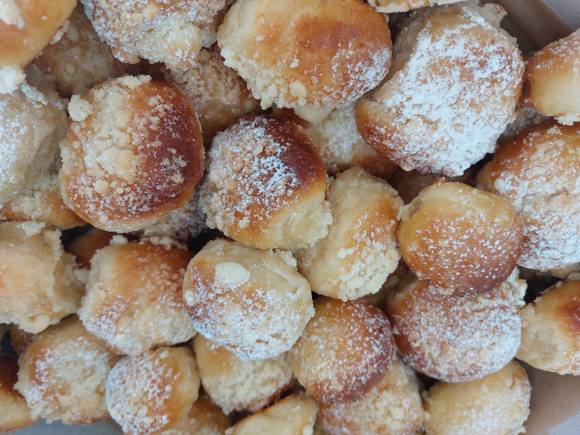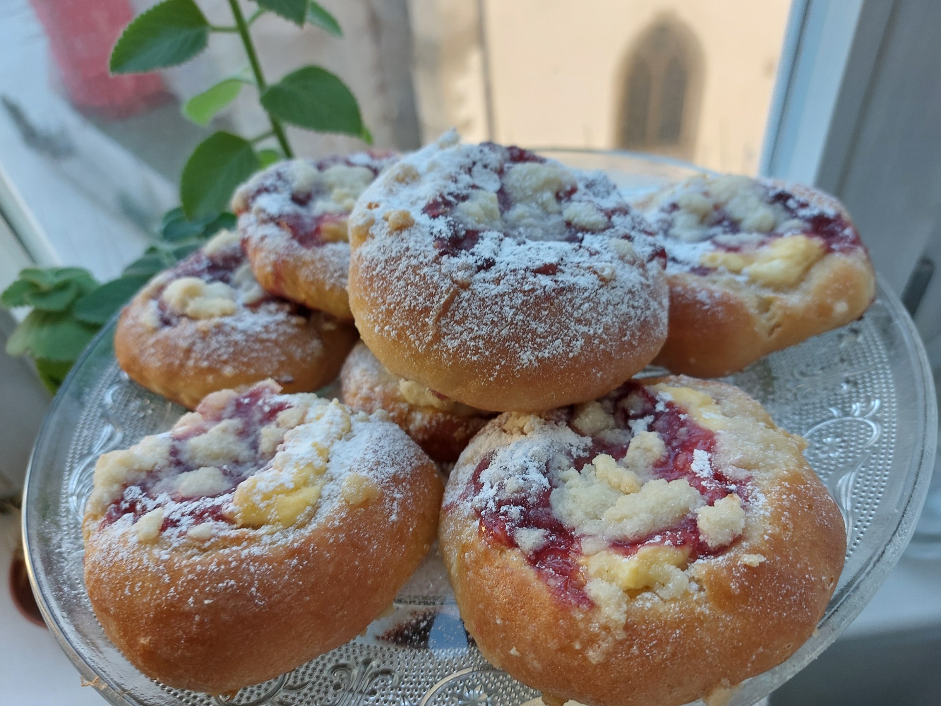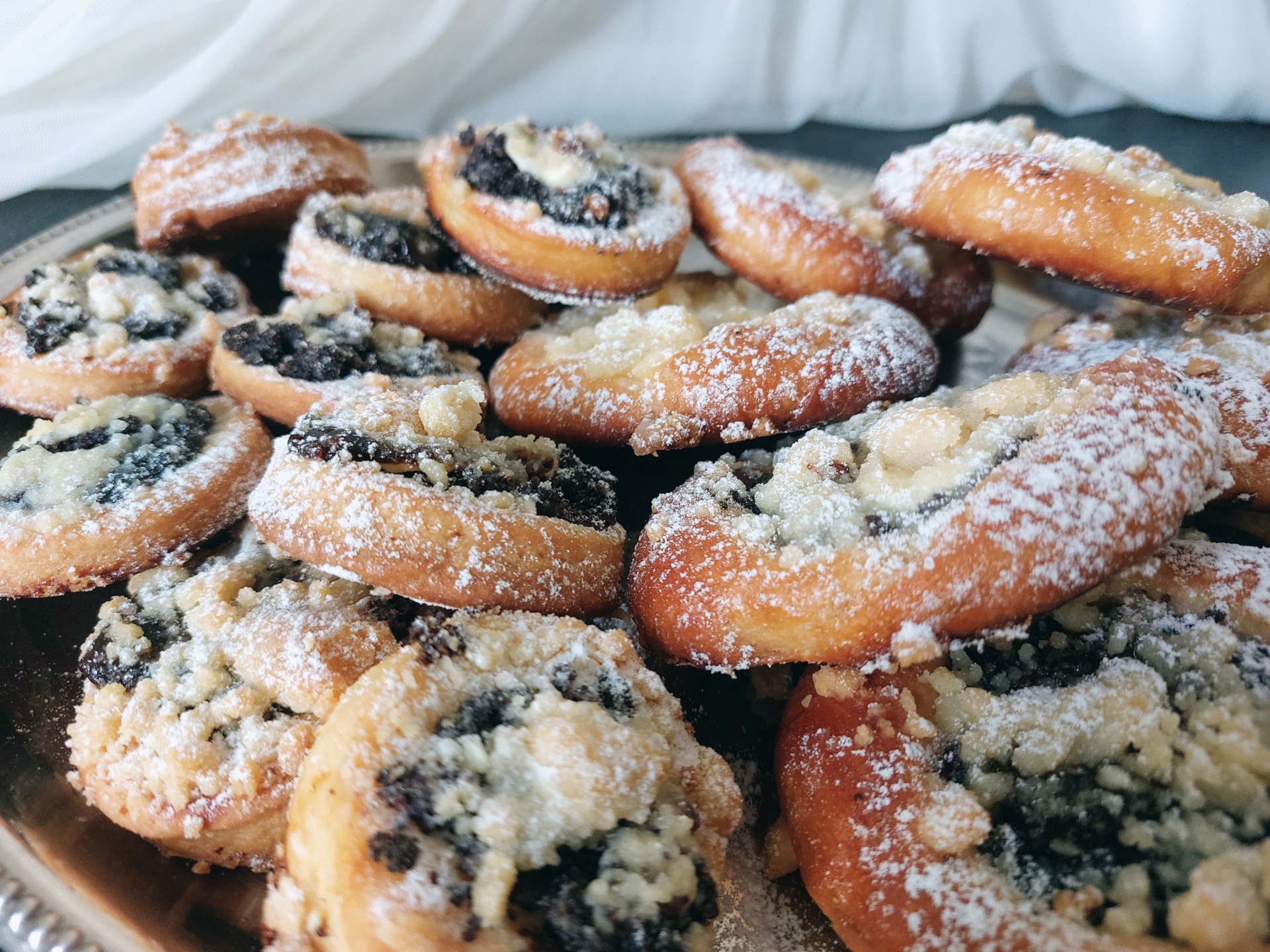 Tradiční mini koláčky z kynutého těsta, plněné tvarohem s máslovou drobenkou