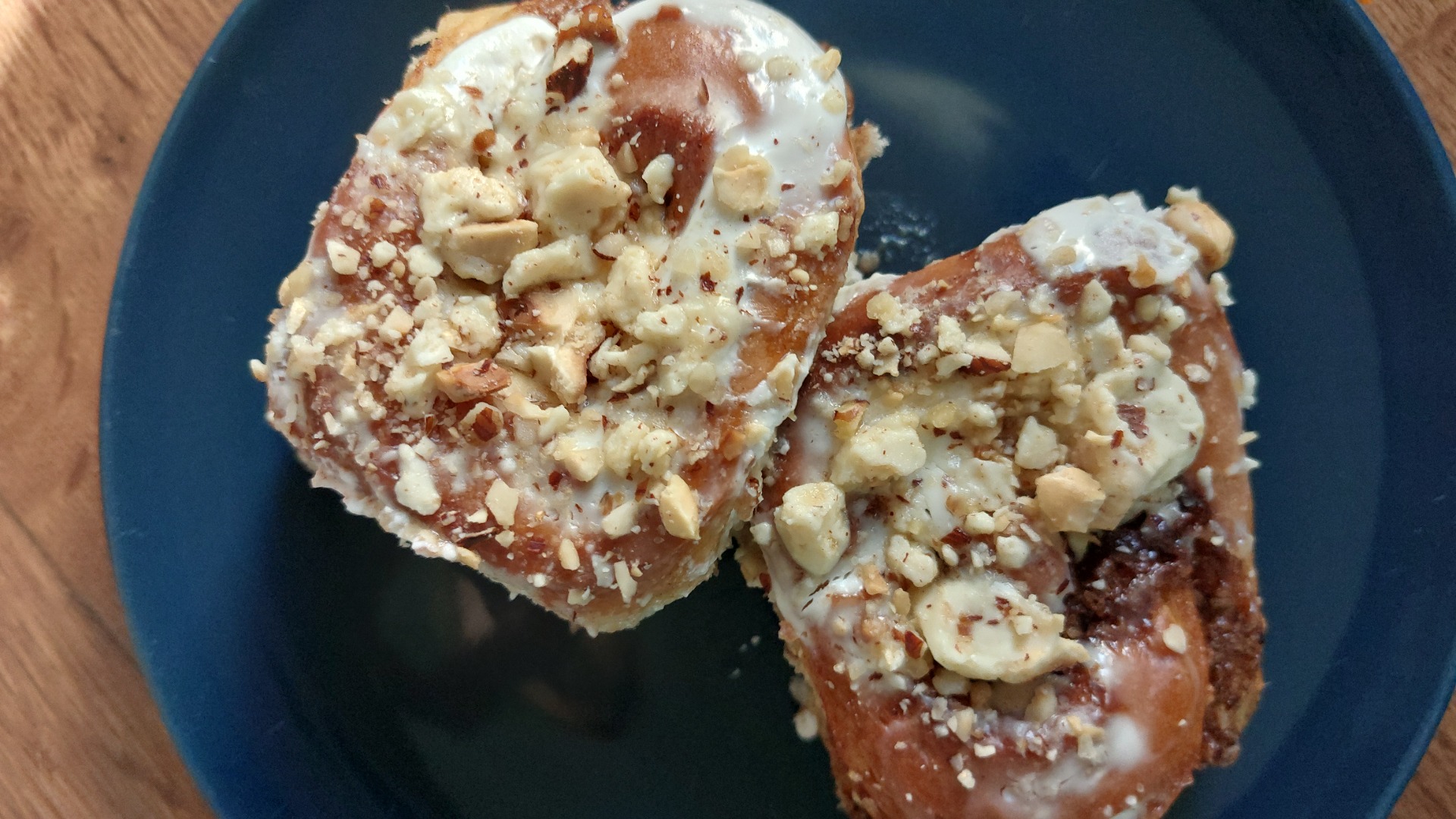 Kynutý skořicový šnek s lískovými oříšky, smetanovou polevou a bílou čokoládou , min odběr 12ks